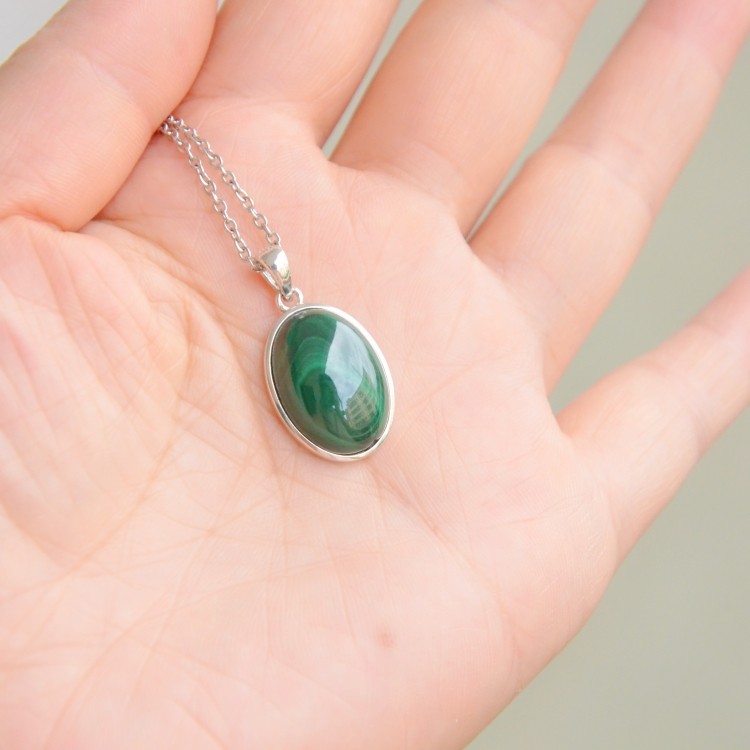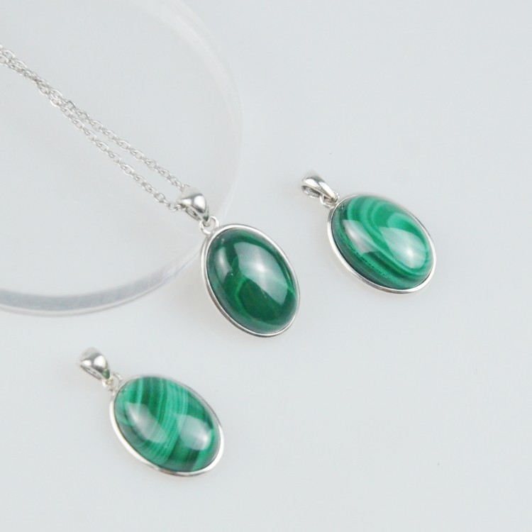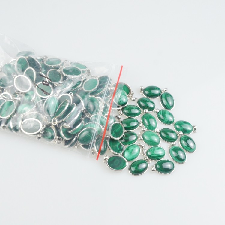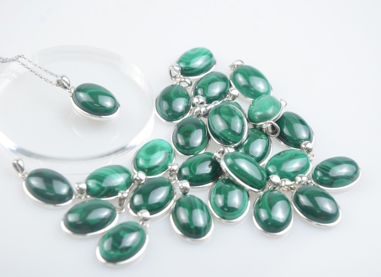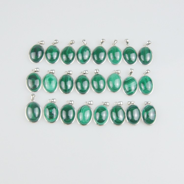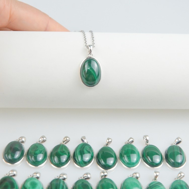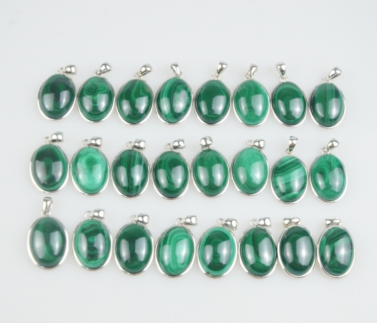 18*13mm Natural Crystal Oval Shape Green Malachite Pendant with 925 Sterling Silver Charm for Necklace Jewelry