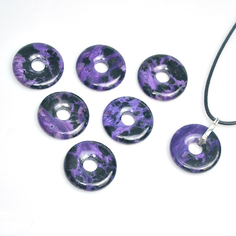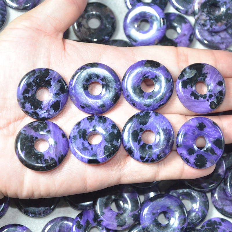 30mm Natural Charoite Donut Pendant for Necklace Energy Healing Spiritual Good Luck Jewelry Wholesale Ready to Ship Small Order