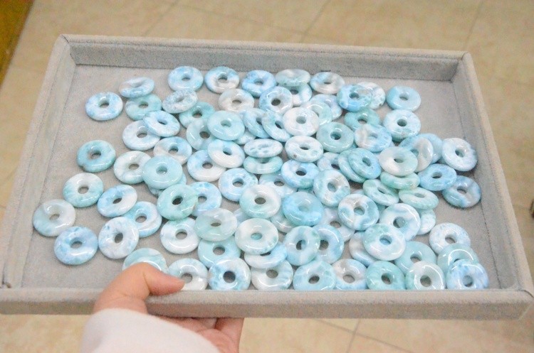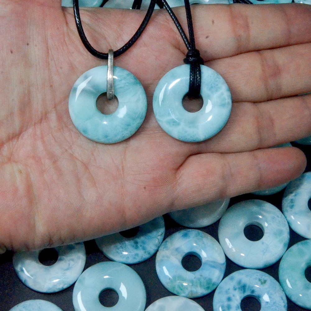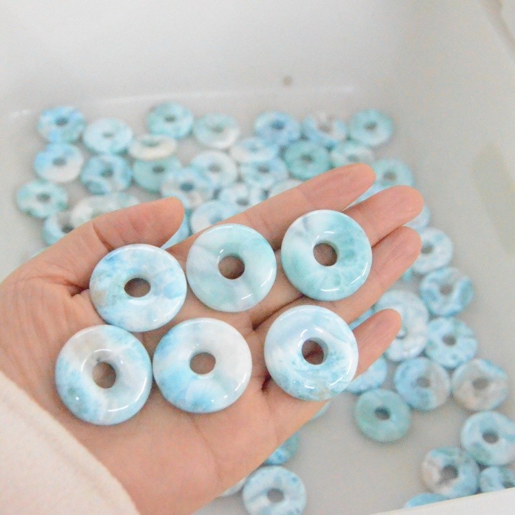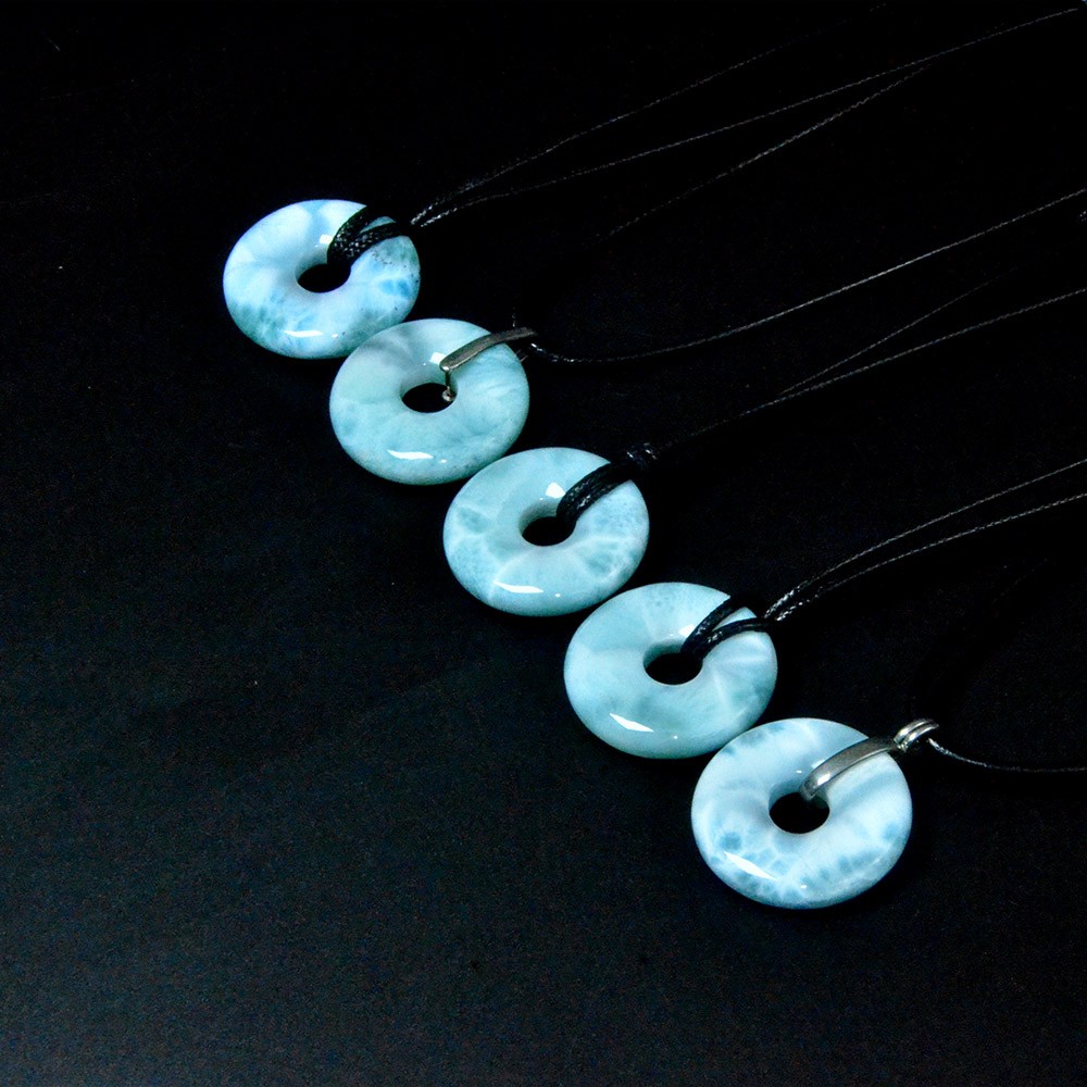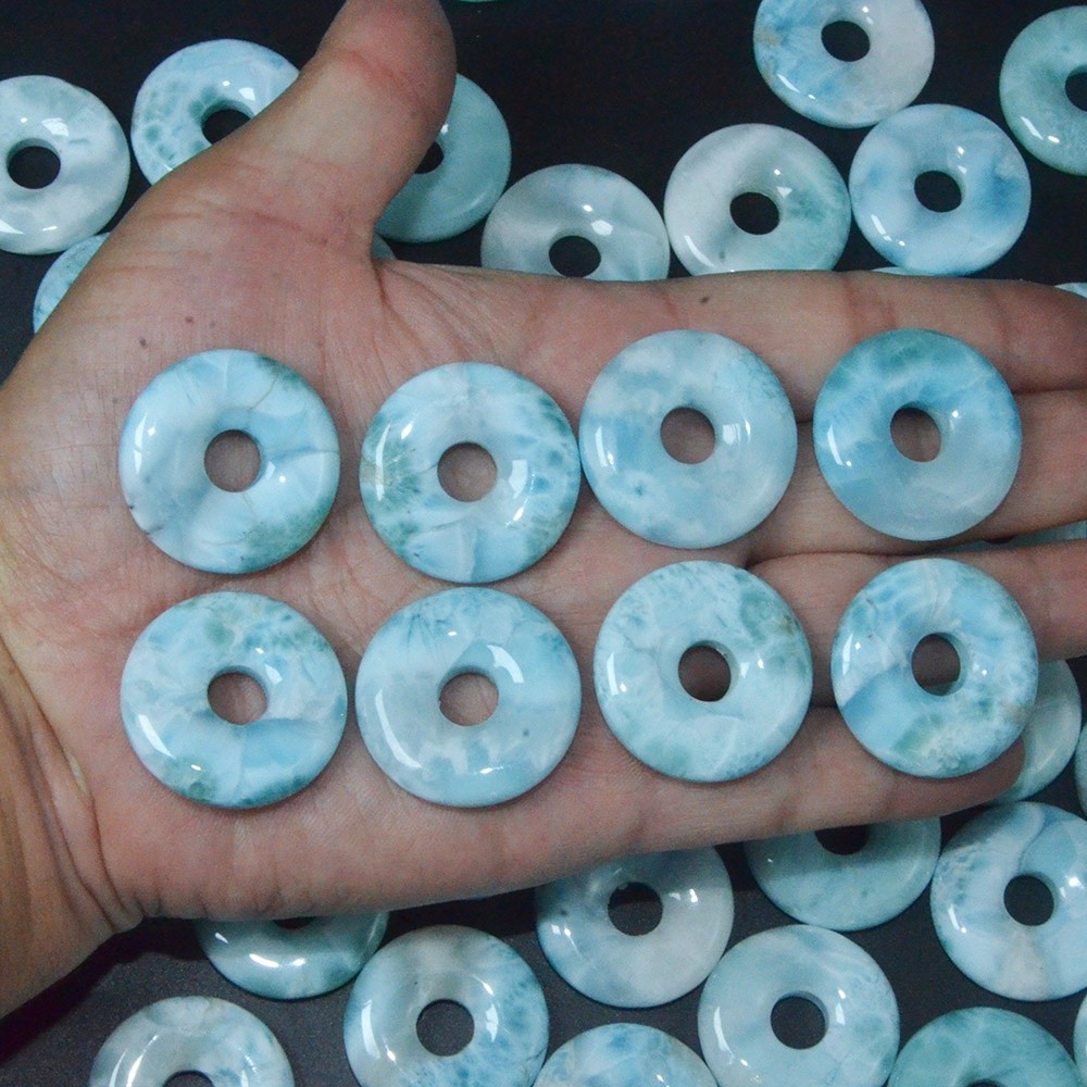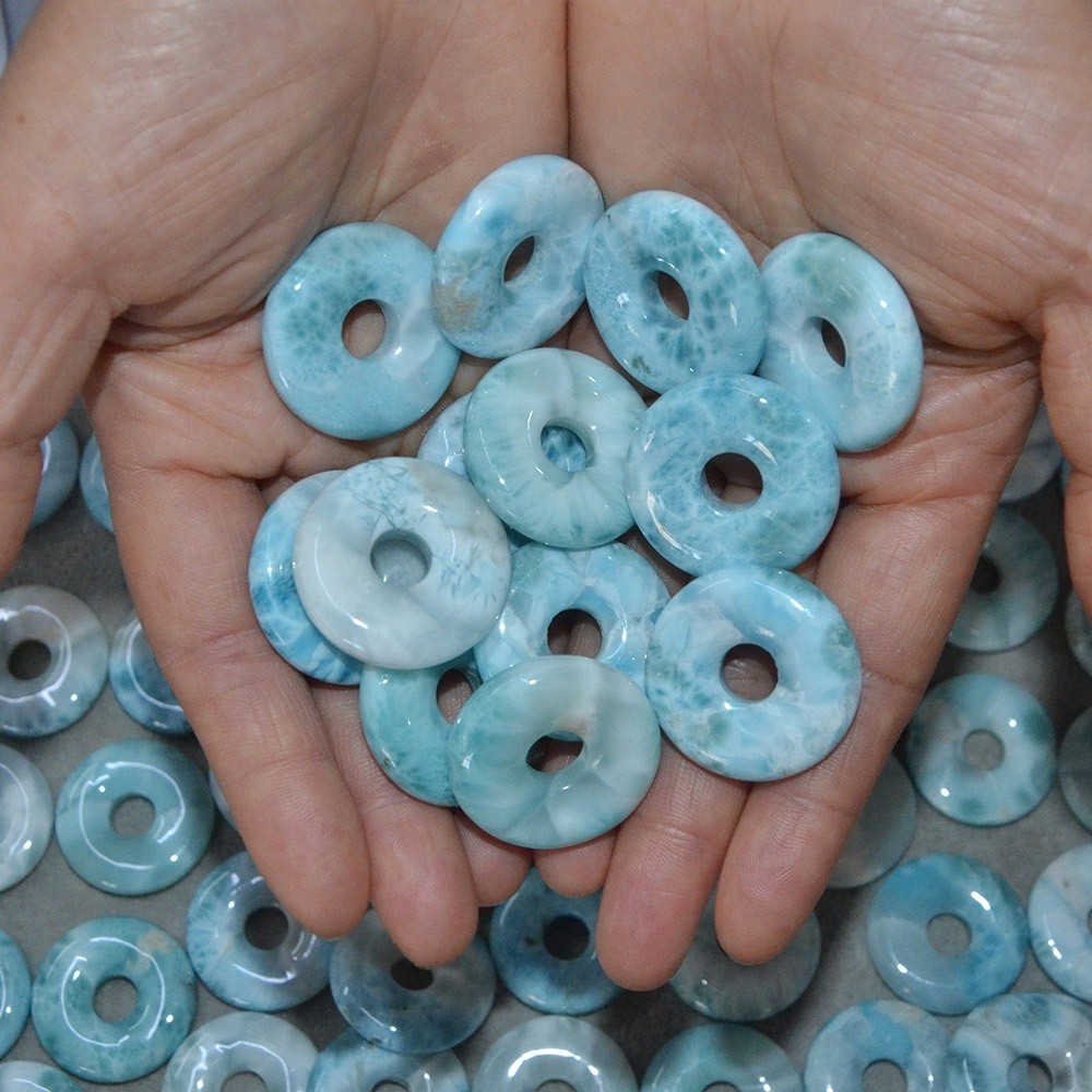 30mm Super Blue Larimar Donut Shape Peace Pendant Smooth 100% Natural Crystal for Love Energy DIY Chakra Jewelry with 8mm Hole