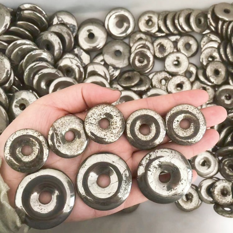 China Aita 40mm Natural Golden Pyrite Donut Stone Beads for Fashion Jewelry Pendants & Necklaces Big Fashion Accessory men jewelry