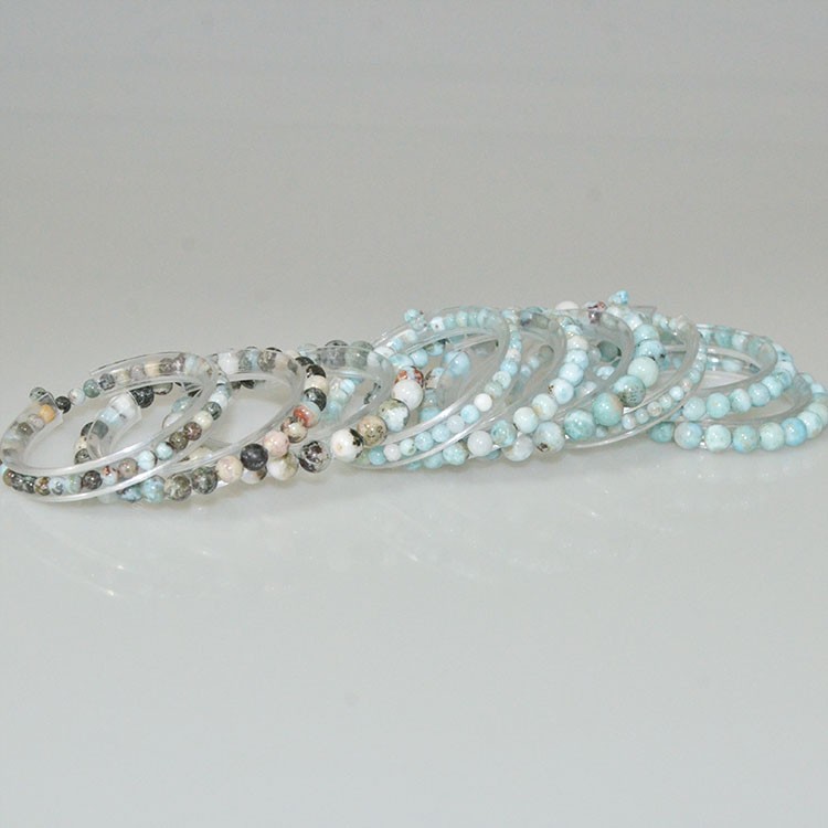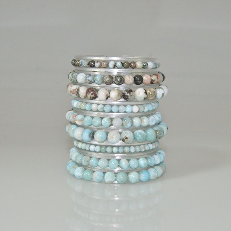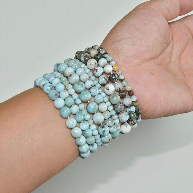 Wholesale Natural Larimar standard size 4mm 6mm 8mm round beading Bracelet regularly supply from China Dongguan factory direct.